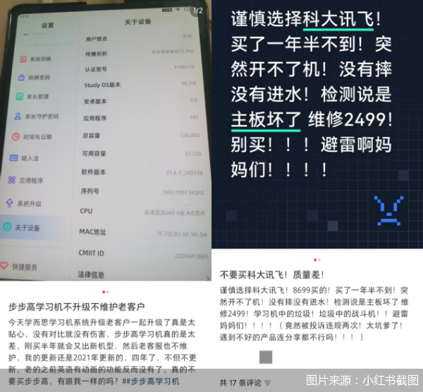 不只是魏茜茜,还有不少消费者吐槽部分学习硬件产品“易坏”。在小红书平台,网名为“momo”的家长吐槽买了听力宝,一年修了三次;“花花”随后留言称自己修了两次,这次刚刚修好不到一周又坏了,只能重新买。更有消费者戏称“可能主要赚的是维修的钱”。