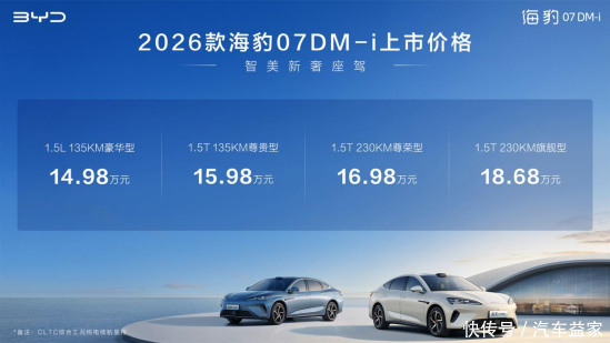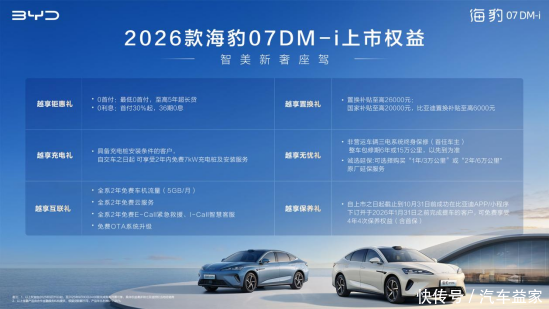 2026款海豹07DM-i以多维产品力进阶,精准满足用户对中大型轿车高品质出行的核心需求。并凭借不断升级的第五代DM技术、领先同级的辅助驾驶以及超百项全系标配等越级配置,将豪华车型的高端配置全面下探至主流市场,以“技术平权”重塑中大型轿车市场价值标准,刷新中大型轿车同级价值标杆,引领出行新体验。目前,新车已全面到店,欢迎感兴趣的用户通过比亚迪APP了解详情或到比亚迪海洋网各大门店品鉴试驾。更多汽车趣闻干货,尽在汽车益家!评论、点赞、转发,关注我们,精彩互动,因你而生