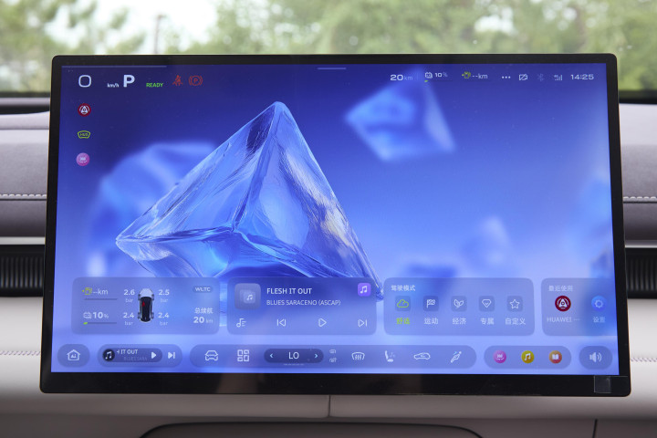 增程车的电驱功率,分为 190kW和200kW两种,我们试驾的300Ultra版,零百加速是 7.6 秒,坐在车里的体感很像是一台 2.0T 高功的动力;舒适模式下很温顺,像暖男似的平稳;切运动模式立马变得暴躁起来,红绿灯起步能感觉到抬头,副驾的妹子都忍不住尖叫 “哇哦”。