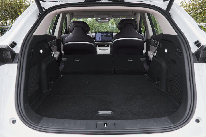 后备厢常规容积 485L,日常买菜、放婴儿车都够用,后排座椅一键放倒后能扩到 1425L,能跟后备箱形成一个几乎纯平的大空间;我试过塞进去一辆公路车、帐篷、折叠桌,还剩地方放媳妇买的一些小物件。纯电版还有个 125L 的前备厢,能放 20 寸登机箱,储物能力在同级里算能打的。