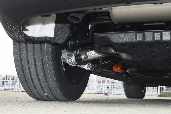 深蓝S07的底盘是前麦弗逊 + 后多连杆的悬挂组合,还标配 FSD 可变阻尼,我认为它的调校,刚好在舒适和运动中间找平衡。过减速带时 “咚咚” 两声就过去了,没有多余的余震,后排媳妇敷面膜都没掉;我还特意绕到山里,找到几公里的烂路,地上的坑洼比脸盆还大,悬架都能稳稳地拉住车身,方向盘一点不抖;高速变道时侧倾很小,H 臂后悬让车尾跟得很紧,不会有开船的晃动感。就算是新手开,也能觉得很稳当。