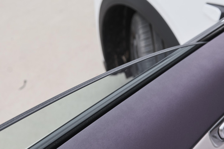 车长 4750mm,轴长比刚好是 0.618 的黄金分割,看着就协调;极光腰线从 A 柱一直挑到尾灯,再配上隐藏式门把手,风阻系数堪比轿车,比同价位的多数 SUV 都要低,别小看这个差距,高速跑 110km/h 时,光这一项就能多跑 8km 续航;因此你可以看到,车辆侧面的线条流畅得很,不会有那种臃肿的 SUV 既视感。