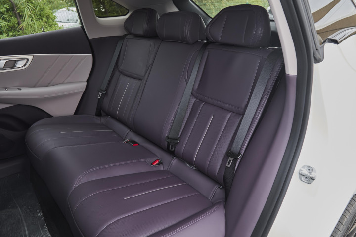 我身高 1米8,体重 180 斤,前排座椅调到合适位置后,头部还有一拳两指空间,腿部活动自如;座椅的电动调节范围很大,高个子矮个子都能找到舒服的坐姿;中控旁边的无线充电板是 50W 的,还带风冷,手机充半小时电也不发烫,顺手放那就行。长轴距就是有天然的空间优势,我前排调好坐姿后,后排膝部还有三拳空间,头部一拳四指,完全能跷二郎腿;坐三个成年人也不挤,中间乘客的腿部空间足够,不会觉得憋屈;后排还有独立的出风口和充电口,坐后面的人也能舒舒服服的。