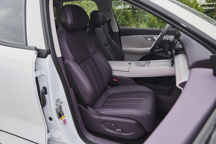 座椅的支撑性也到位,我连续开四小时高速,后背没出汗也没腰酸。我们试驾的300Ultra版,副驾标配的是零重力座椅(部分车型的主驾也可以选装),120 度仰角配腿托调节,再开个按摩功能(部分车型),跑长途跟坐沙发似的。